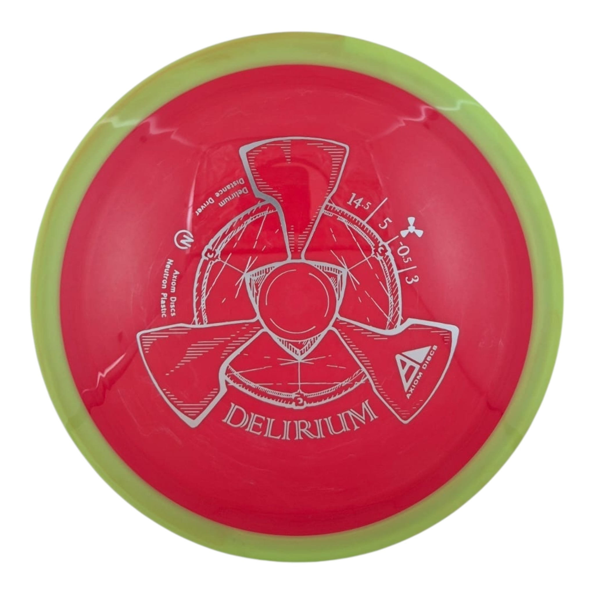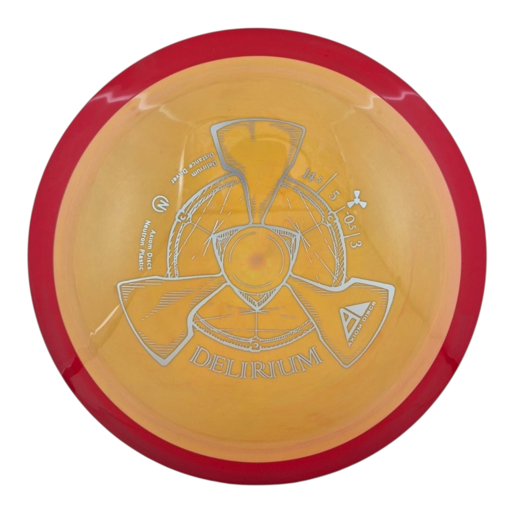 Make the competition feel delirious with the Axiom Neutron Delirium! The Neutron Delirium is an overstable distance driver designed for maximum speed and very overstable flights. The Delirium joins the Tantrum and Excite distance drivers as the overstable 24.5 MM Distance Driver making its debut in Neutron Plastic. Fans of the MVP Dimension will find a kindred spirit in the Delirium due to its capacity for high speed throws with minimal turn, even in high wind situations. Take the wind head-on with maximum distance drives from Axiom Discs Neutron Delirium Distance Driver!