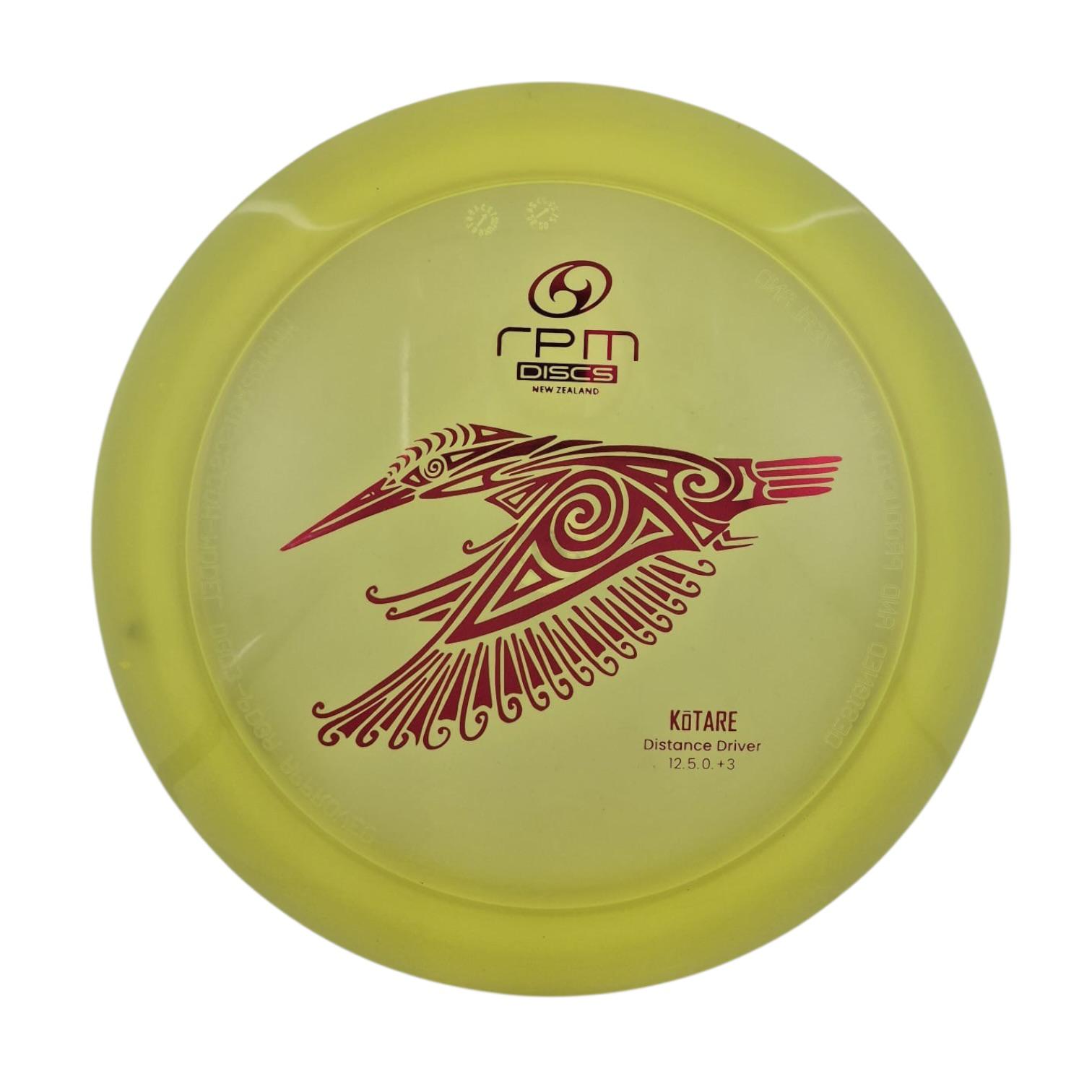RPM has strengthened its range of drivers with the Kotare an overstable high speed driver. The ‘Kotare’ {Ko-tar-ray} will provide you with a predictable flight no matter what the conditions. High power drives will glide but not turn and have a long slow Fade, Anhysers will give a nice full flight S curve. The Kotare makes an excellent Flick disc with a slightly deeper rim than the Kahu and is PDGA credited to 176g making it a great choice for head wind drives.